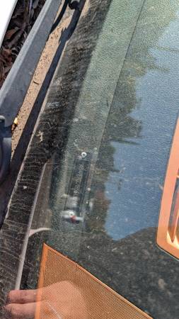 Damaged windshield, slight bent hood (improper closing attempt), rear bumper missing (from lift gate install) and rear double doors show sign of rust from the lift gate being pushed up against it.