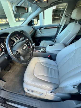 2013 Audi Q7 in good condition. Clean and comfortable with plenty of space. Features include roof racks, third row seat, pano roof, backup camera, Bluetooth connectivity, and blind spot monitoring lights on the mirrors. Tires have a good amount of tread left