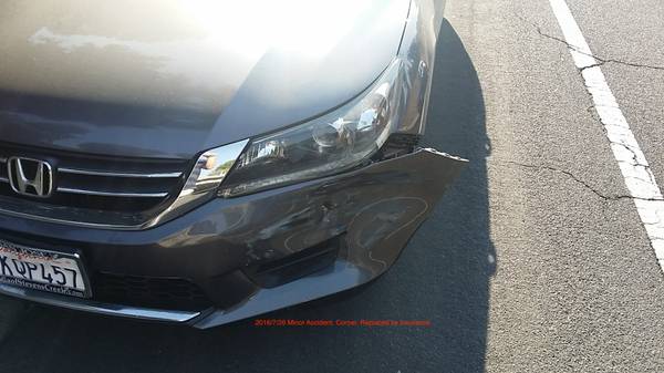 2. On 2016/07, left corner hit another car, front bumper and left head light were replaced.