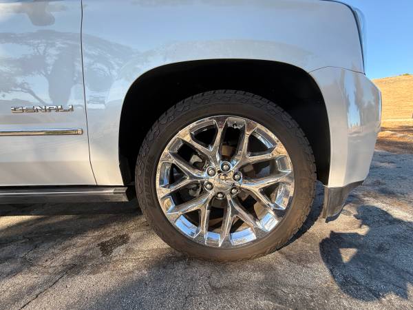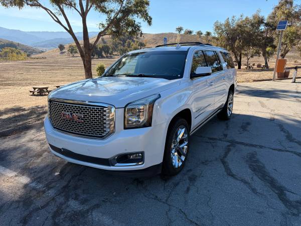 Excellent condition 2016 GMC Yukon Denali XL 4x4 6.2 motor with 119,600 miles, sun roof, 3rd row, 7 passenger and lots of room for cargo. New tires (09/25), new front brakes (09/25) oil change (11/25), new registration (11/25) smog tested (11/25). White exterior paint in very good condition, a few nicks, very minor and very difficult to notice. Black interior in excellent condition. Rear seats fold down for more room for cargo. Weather tech mats. Touch screen, nav system, AC, heated seats. This Yukon Denali is excellent for road trips, very roomy and comfortable.