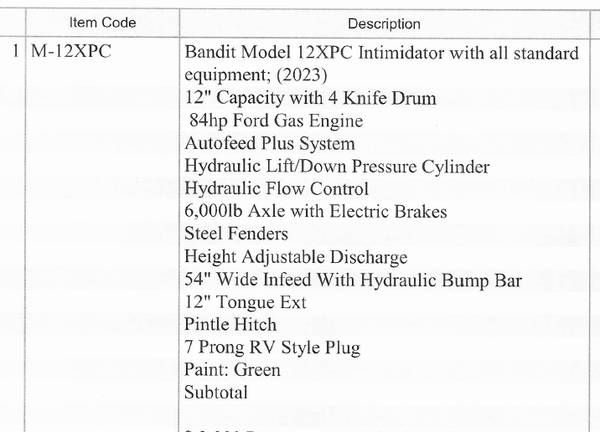 Bandit chipper 12xpc GAS. Very low hours 1000hrs
