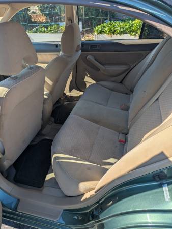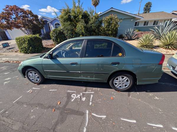 Very low mileage on my 2004 Honda DX. It would make a great commuter (great gas mileage) or vehicle for new driver. The engine and transmission, air conditioning and am/fm/cd all in good working order. The DX has manual door locks, windows and side mirrors. This vehicle was sideswiped with minor damage, but enough for the insurance company to total it, so currently on a salvaged title. It has some exterior and interior blemishes but no major dents or damage. It recently passed the new California safety inspection on 6/20/2025. It's running great and has very low mileage, only 98,105 miles as of this posting.