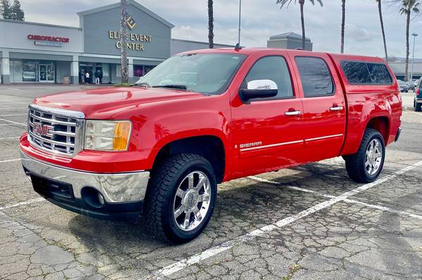 Selling my 2007 GMC Sierra 1500 SLE 2WD, 101k Miles, 5.3 flex fuel, 2WD leveled with 20” Escalade Wheels, BRAND NEW 275/60-20 All Terrain Tires with less than 100 miles in them! Regularly serviced with oil changes every 10k mi. Gets great gas mileage for a full size truck. I had the cab completely repainted about 3 years ago because the clear coat was peeling on the roof & hood. Replaced the AC evap core last year.