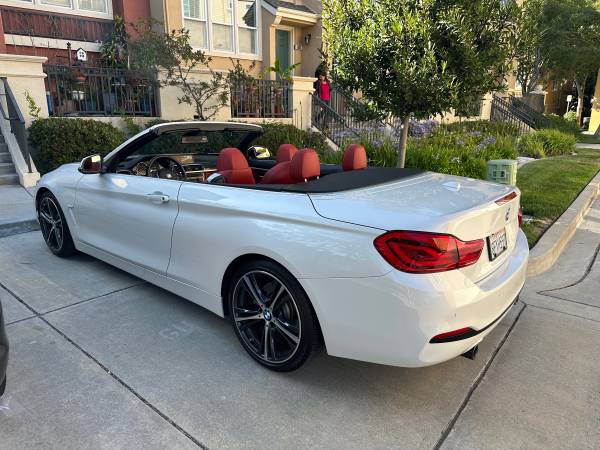 2019 BMW 440i Convertible in white with a striking red interior. This car has only 45,000 miles, which is lower than average for its year. It's in good condition and packed with features: 3.0L Turbo 6-Cylinder engine 8-Speed Sport Automatic transmission Rear-Wheel Drive M Sport Package 19"+ Premium Alloy Wheels Power Hard Top Leather seats with heating and dual power adjustment Harman/Kardon sound system Head-Up Display Navigation system Blind-Spot Alert and Lane Departure Warning Loaded with comfort and safety features. Perfect for both spirited driving and relaxed cruising. Chat me for more details or to arrange a viewing. Vehicles are sold as-is, except when state law requires an implied warranty. Price excludes government taxes and fees.