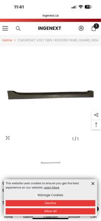 2012 Silver Chevrolet Volt in good condition with 101054 miles. Oil changes were always done by using full synthetic motor oil and original GM/Delco oil filters. Passenger side Rocker Panel Molding Part # 22810846 has fallen off. After market replacement part for this piece of cosmetic plastic molding that runs under passenger front and rear doors costs $21. I would replace myself, but the shipping time takes some time and I am leaving the area in early December.