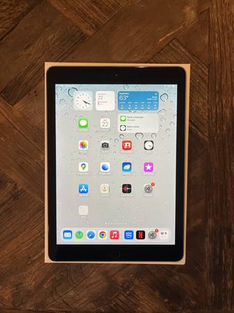 iPad 6th gen 128GB storage, with box. Color is silver. Mint condition, no scratches or marks of any kind! Never used by kids. Battery life is also very good. Thanks.