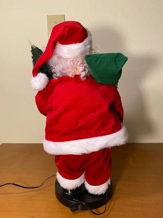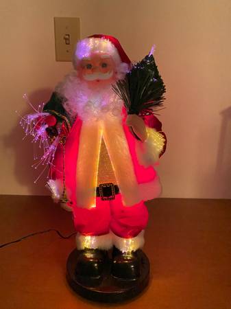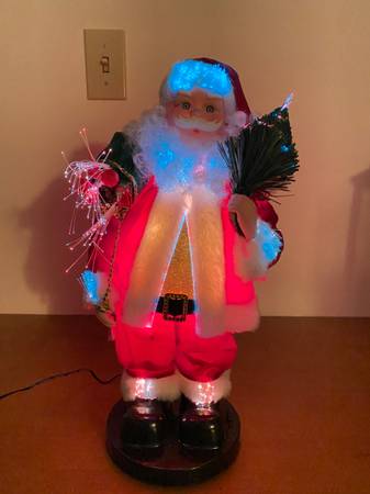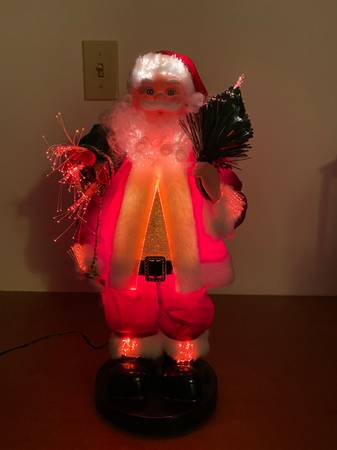 An excellent condition likes brand new (only used it one time), 16” high fiber optic Santa Claus animated electronic operated using an AC adapter. It’s very fun and joyful bringing up Christmas atmosphere to your home or office, and a great gift to your love ones.