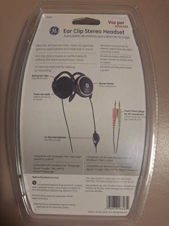 Small Lightweight In-Line Mic Comfortable Stereo Eat Clip Headphones GE Voice-over Internet Clear Stereo Sound Unopened Still In Package Please See Pictures If You Have Any Questions, Please Call Or...