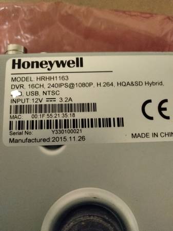 Honeywell 16 channel Hybrid DVR, high decoding capability for full HD viewing and recording.,View up to 16 channels simultaneously on your monitor with 4 MP full frame rate preview.,Record all channels @ 4 MP full frame rate.,H.264 dual-stream video compression.,Each channel supports HQA/analog video input, HDMI/VGA video output. The Quick wizard makes setup fast and easy. Two Internal storage bays, one SATA Seagate Skyhawk Surveillance Hard drive 8 TB, /N 2EJ112-300. Includes power supply and mouse. This system is in "Like New" condition. No problems whatsoever. Generally selling @ $300 on up. I'm selling right now for $75 I'm available all day and tonight to sell. Why wait till tomorrow when you could buy right now.
