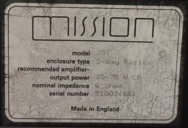 For sale is a single audiophile-quality speaker intended for placement as a center channel in a 5.1 or 7.1 or 9.1 home theater surround sound system. This is a Mission brand, model number 751. Complete details are listed below.