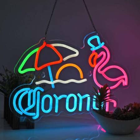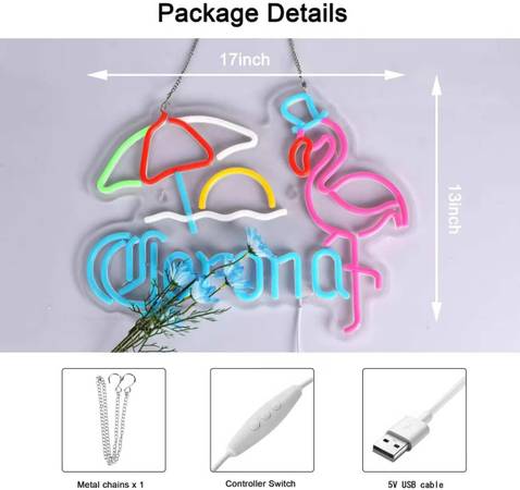 NEW Neon LED Light Beach Umbrella Flamingo Beer Windows Wall Decor Bar Party Man Cave Decor Dimmable USB-Powered