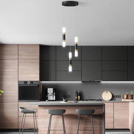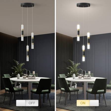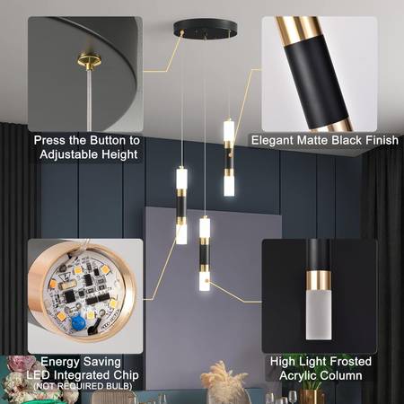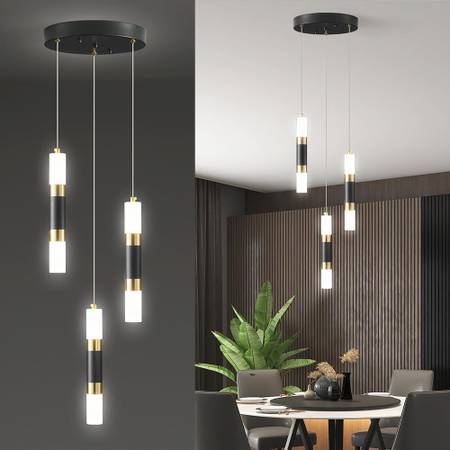 🌟Sleek and Chic Design: Elevate your home aesthetics with our modern kitchen island pendant light in the timeless combo of black and gold. Crafted with precision using high-quality aluminum and crystal acrylic, it's not just a light – it's an elegant statement piece. Modern, minimalistic, and versatile, it fits seamlessly into any room, be it the kitchen, dining area, or living room.