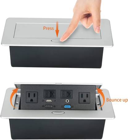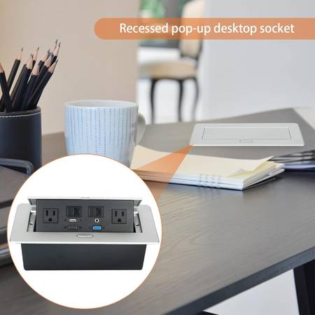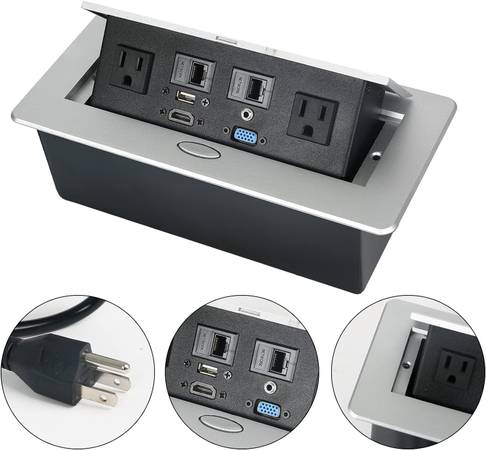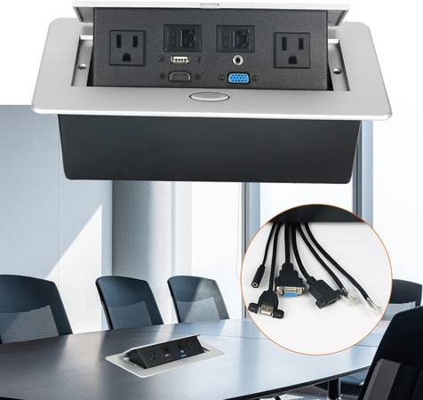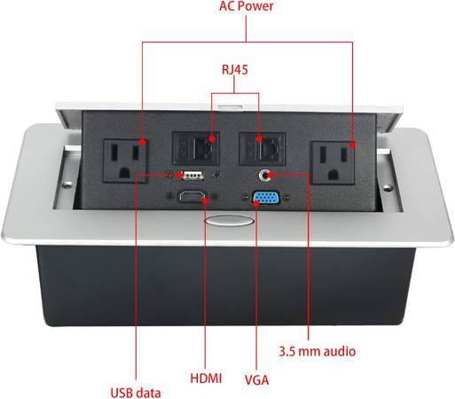 NEW Table Pop Up Outlet Power Strip Center countertop Socket Recessed Multimedia USB Network HDMI Connection Box Desktop Conference Desk Office Hotel