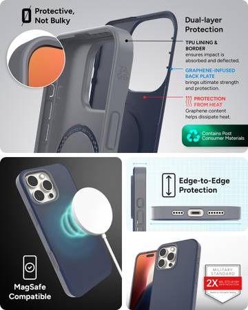 NEW ZAGG SoHo Snap Case for iPhone 16 Pro Max MagSafe Compatible 10ft Drop Protection Graphene-Infused, Wireless Charging Eco-Friendly, Two-Tone Design Navy Blue Gray