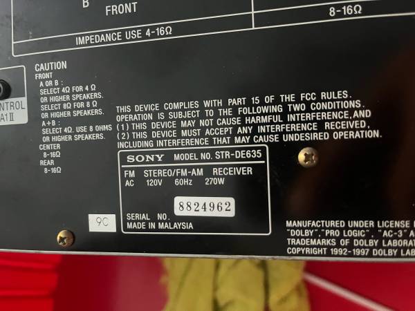 Sony STR-DE635 5.1 Channel 500-Watt Digital A/V Receiver Missing the volume knob but still operable Call or text