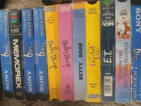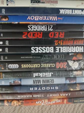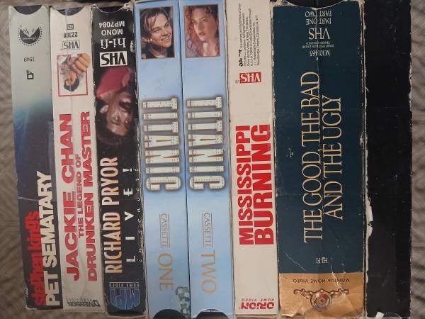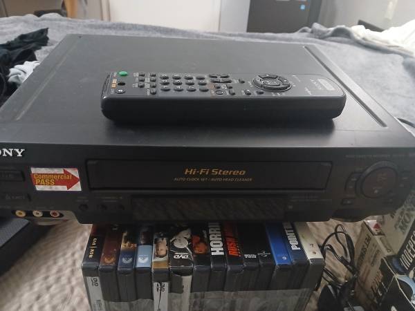 VCR player 50, and 2 DVD players 20ea. VCR tapes and DVDs, 5ea.