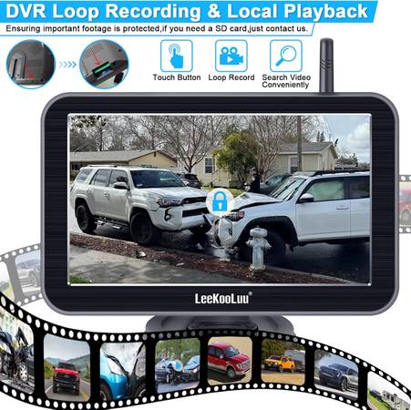 【DVR Recording Function】The wireless backup camera with monitor system supports video recording function.The video data is loop recording and stored in the SD card.You can avoid any scam/theft. Maximum supports 128G SD card.