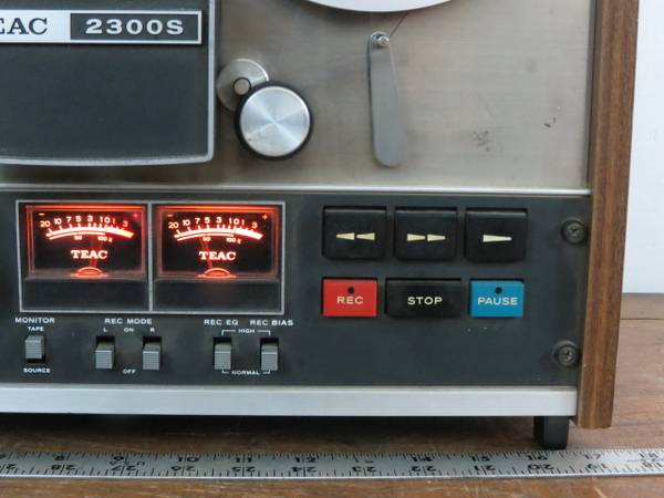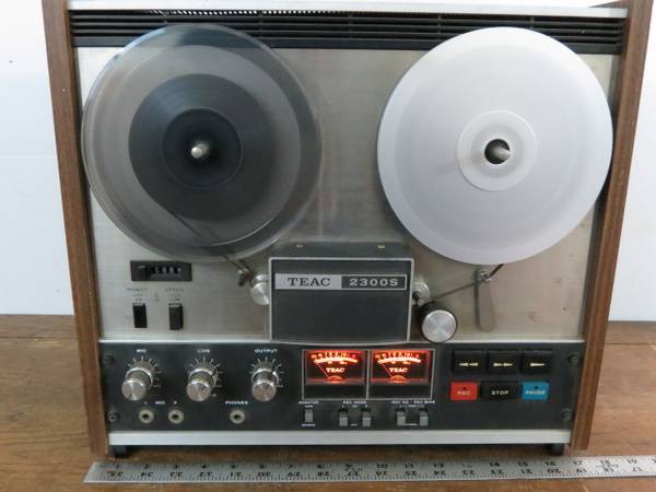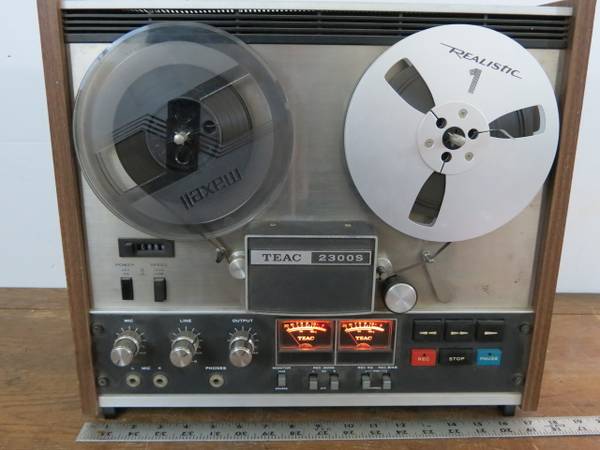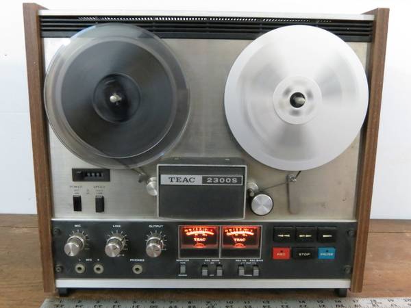 Up for sale is one used TEAC 2300S reel to reel tape deck in good working and cosmetic condition. There are some small nicks and scratches on the exterior and some dents in the top cover. Tape transport functions are working. Heads show some wear. Recordings on good quality tape sound clear. Quarter track stereo with 7.5 and 3.75 inch per second tape speeds. Includes detachable power cord and realistic brand metal take up reel.