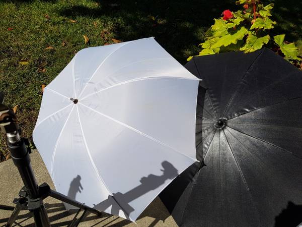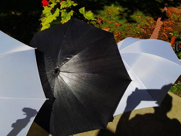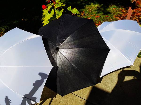 3 Light Umbrellas, 2 White, 1 Silver