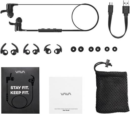 VAVA MOOV 25 Bluetooth Headphones, Magnetic Wireless Headphones Sports Bluetooth Earphones, aptX High Fidelity Stereo, IPX6 Splash Proof Earbuds, 9 Hour Battery, cVc 6.0 Noise Cancelling Microphone