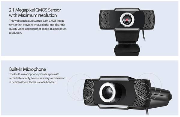 2.1 Megapixel CMOS Sensor with Maximum resolution - This webcam features a true 2.1M CMOS image sensor that provides crisp, colorful and clear HD quality video and snapshot image at a maximum resolution.