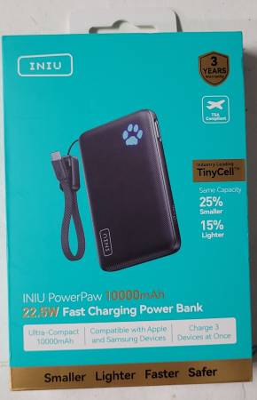 INIU - Portable Charger, Compact 10000mAh PD 22.5W Power Bank for iPhone, Samsung - Black