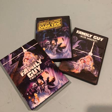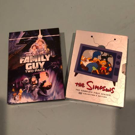 Simpsons and Family Guy DVDs condition: like new media type: dvd Simpsons - The Complete First Season, $35 on Amazon Family Guy - 2 pack, Blue Harvest and Dark Side, $19 on Amazon $6 each or both...