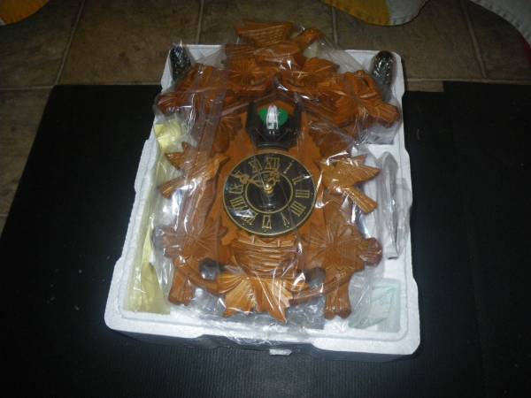 wall clock solid walnut15.35 height by 10 width X 6 depth jc penny home colection comes with volume controle X night shut off feature deckcortive wood pendulum chain and weights good looking uses 2...