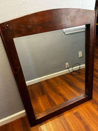 Arched Dresser Mirror, Walnut wood Size: 42'' x 33'' Thickness: 2 in. Used- Like New $30