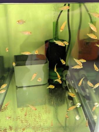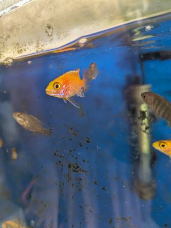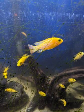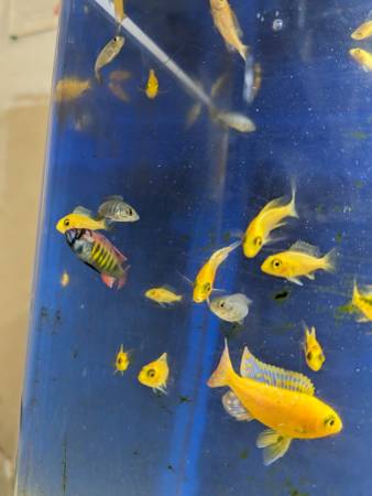 I am breeding very healthy African Cichlids currently eating Ken's Cichlid Flakes. I have been in the hobby for 20+ years. My rehoming fee is $5/ea with a minimum of 4 fish. I recommend buying in groups of 6-10+. I have sizes from 1"-2". No hand picking fish, guaranteed males $10/ea