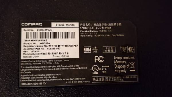 18.5" Compaq S1922a and 19" Dell E1914Hc computer monitors. $40