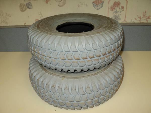 Mobility Scooter Pneumatic Tires New. Made by Cheng Shin 260x85 3.00-4 10x3 TUBE TYPE. 2 Tires in all. never used. Sold as is Cash Must pick up
