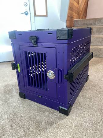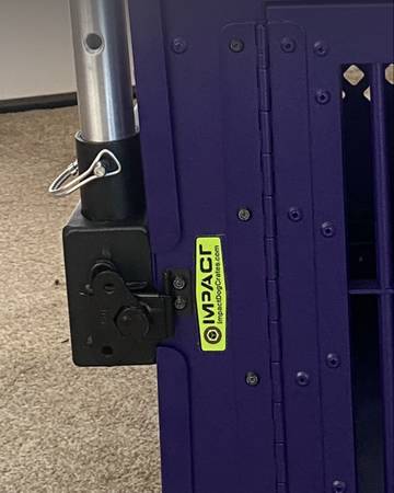 Deep Purple Collapsible 24" Impact Dog Crate, includes grooming arm attachment and non-slip padded top. NOT airline approved without special brackets from Impact. Dimensions 24 L, 21.5 H, 17.75 W,...