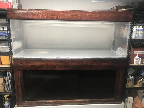 180gal 1/2” thick acrylic / plexiglass fish tank/aquarium Includes: - Canopy - 6’ LED light - Custom built solid wood stand Canopy & Stand was stained with red mahogany and varnish applied for...