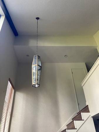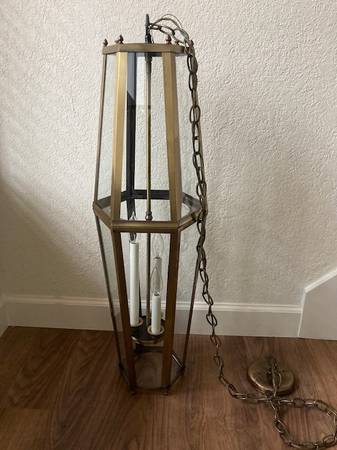 I am 2 selling beautiful traditional brass/glass matching chandeliers. Great for stairways, hallways, dining rooms - rooms with cathedral ceilings. Buy either or both. These are quality items. I...