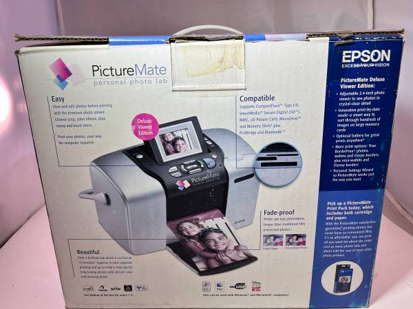 This is a new/open boxed never used Epson Printer Mate photo printer in original box. Compatible with all popular digital cameras' memory cards; easily view and select your pictures, then print...
