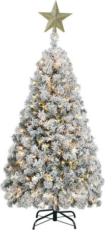 Like New 4.5ft Pre-Lit Artificial Hinged Christmas Pine Tree Prelighted Holiday Xmas Tree Foldable Stand Home Party Decoration 150 Warm White Lights and 324 Branch Tips White