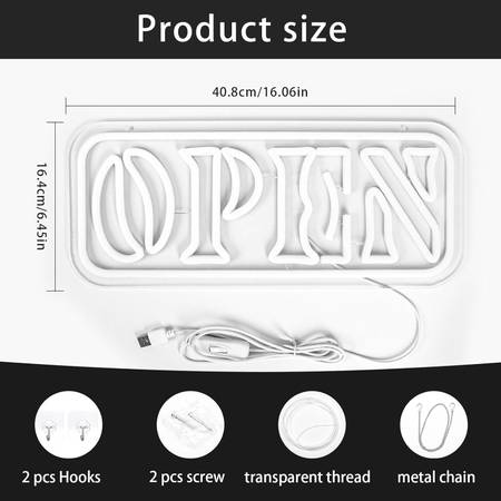 Easy to Install: Our open neon sign package includes an expansion screws*2, 80cm suspension chain*1, and strong sticky hooks*2, a 78.74 in foot long USB port power cord. There are two pre-drilled holes on acrylic backboard for easy hanging anywhere you want to display, then plug in and turn on the switch, and your storefront window will instantly light up with a dazzling new sign.