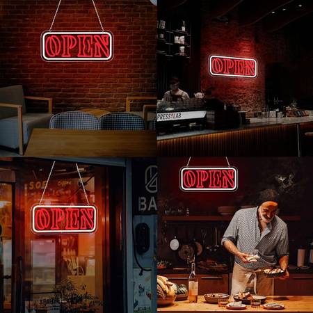 Like New Neon Open Sign for Business LED Neon Open Light Sign USB Powered ON/OFF Switch for Wall Decor Storefront Window Store Restaurant Club Hotel Bar Coffee Salon Retail Shops Pubs