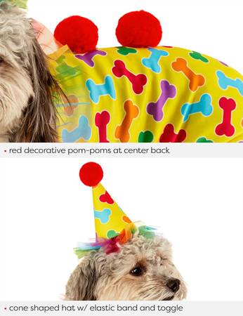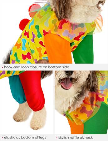 PLAYFUL DESIGN: This clown pet costume includes a jumpsuit, hat, and backpack, perfect for adding a vibrant and fun touch to your Halloween or themed parties.