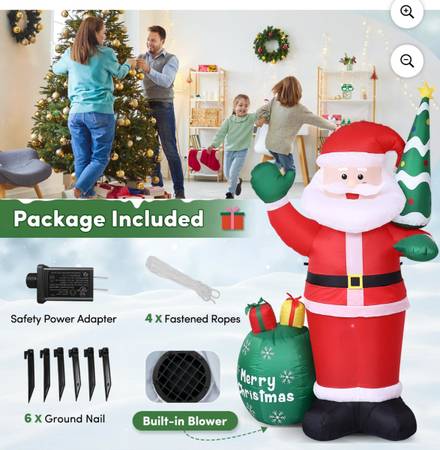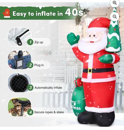 Qunler 8FT Christmas Inflatable Outdoor Decoration, Santa Christmas Inflatable with Build-in LEDs for Xmas Party Outdoor Yard Garden Lawn Winter Decor
