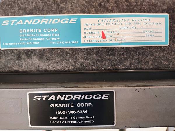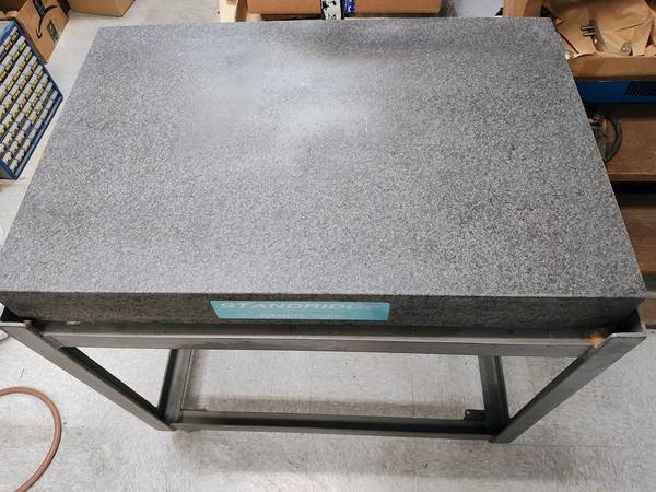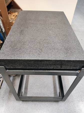 Came from the inspection room Grade A ( see data plate) size 24" x 36" x 4" currently resting on OEM stand with the surface of the granite 36" from the floor. The stand is mobile and have 4 wheels, 2 can swivel and 2 are fixed.