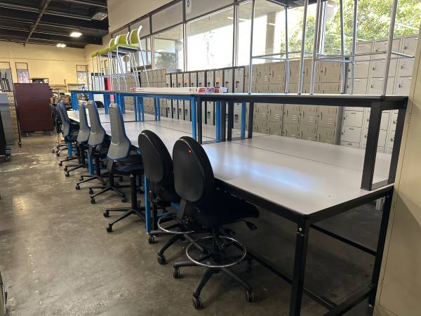 Need desks? Adjustable height desks also available here as well as your standard straight, L shape, or U shape with and with out hutch. File cabinets both fire resistant and non fire resistant. Conference room tables any where from 4'-16'.