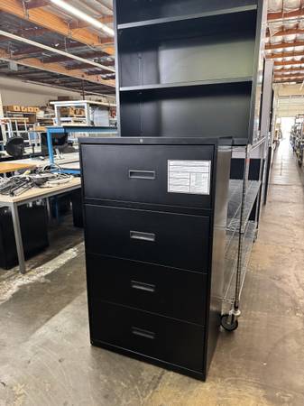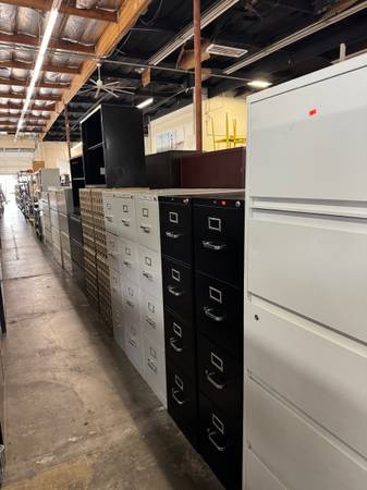 We offer a wide range of both new and used vertical and lateral file cabinets. With both metal and laminate finishes, these storage units are essential for any office or even home space. In addition to our many used options for both finishes, we also give customers the option to buy these storage units brand new in a variety of colors in order to match their preexisting or new office set-ups.