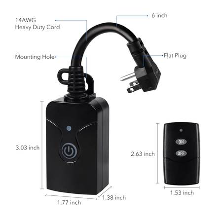 Weatherproof: our outdoor remote control outlet is built to stand the test of rain and harsh weathers. Please place the plug at least 2 feet off the ground with the plug pointing straight down to avoid water damage.