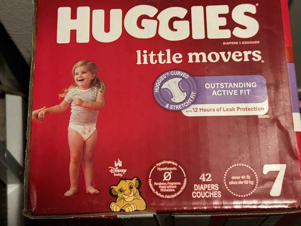new in box Huggies outstanding active fit curved & stretchy fit up to 12 hours leak protection 42 in case Disney characters hypoallergenic NO parabéns, fragrance, or phthalates New cash and...