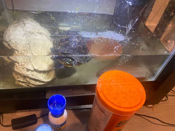 Rehoming 5 gallon tank complete with hood light filter and 1 red eared turtle