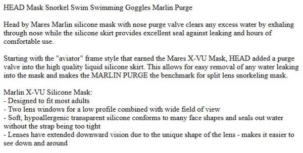 Snorkel Mask Swim Swimming Goggles - general for sale - by owner -...