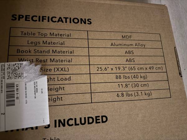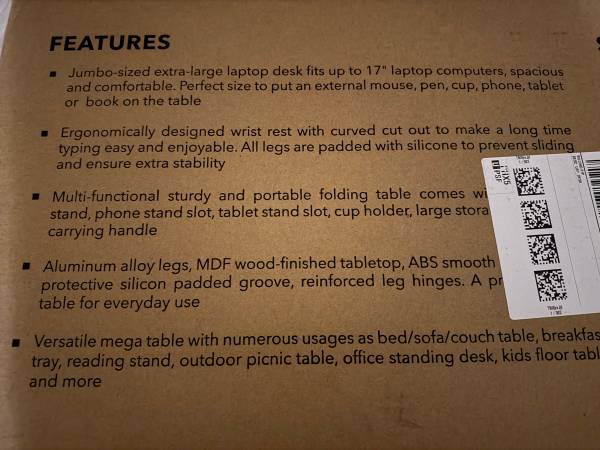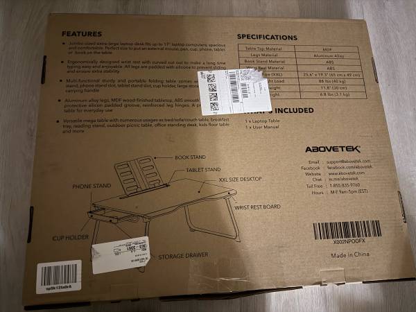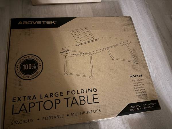 Abovetek Extra Large Folding Laptop Table with drawer 25.6" x 19.3" with phone stand, cup holder and bookstand. Fits up to 17” laptop. Cup holder, phone stand, book stand, wrist rest board.