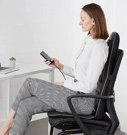 -Breathable mesh and leatherette exterior; fits like a seat cover over most chairs for a full massage experience